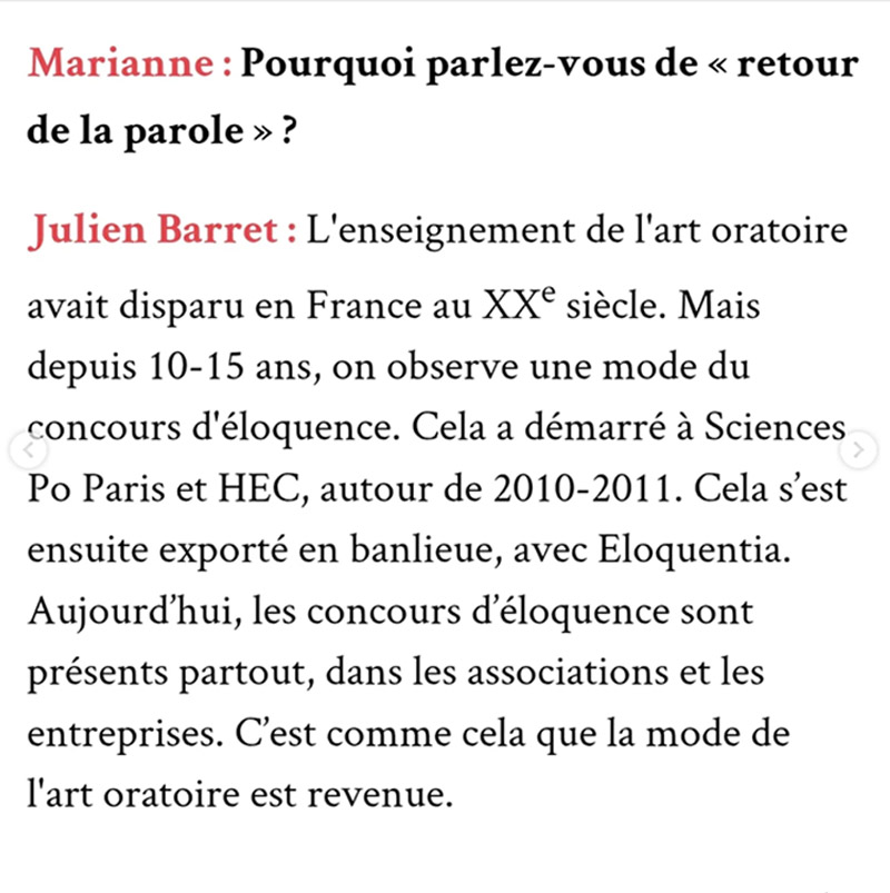 Entretien dans Marianne sur le retour de l’éloquence